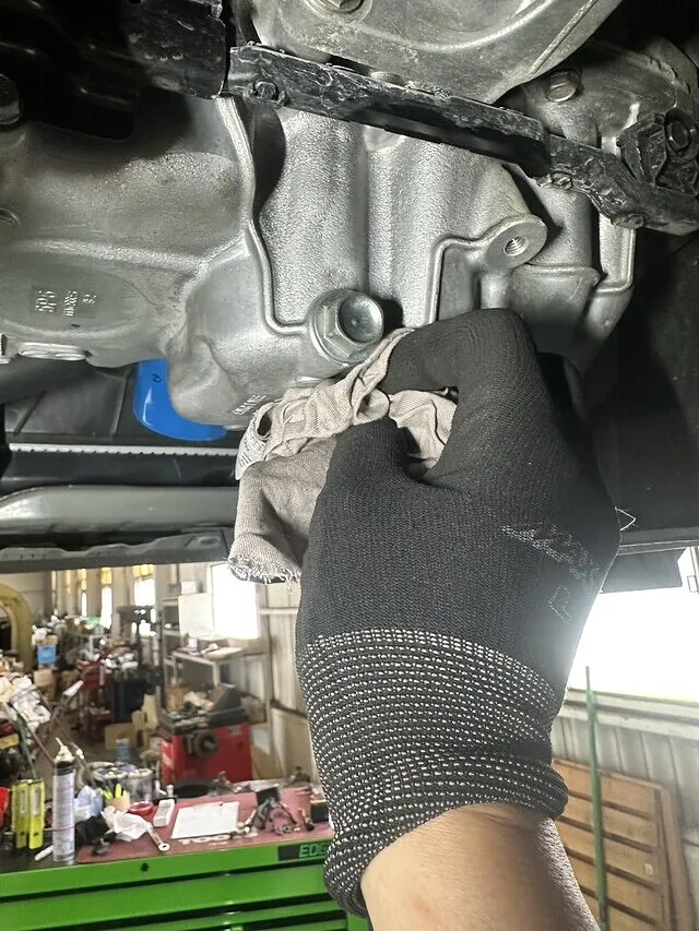 汚れたオイルを抜いて、ドレンボルトをしっかり締めてパーツクリーナーで綺麗にして✨