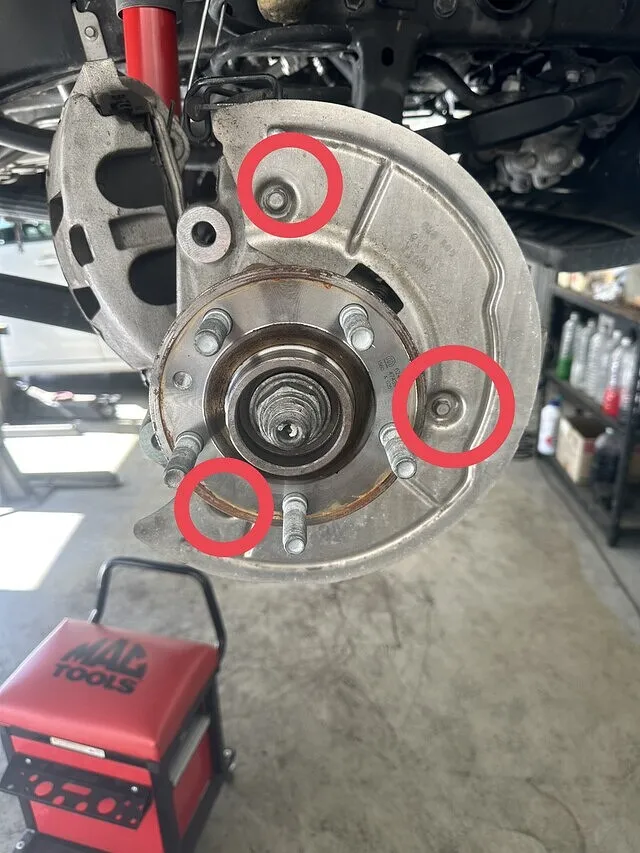 ハブベアリングハウジングは裏側から13mm3本を外すと外れます。